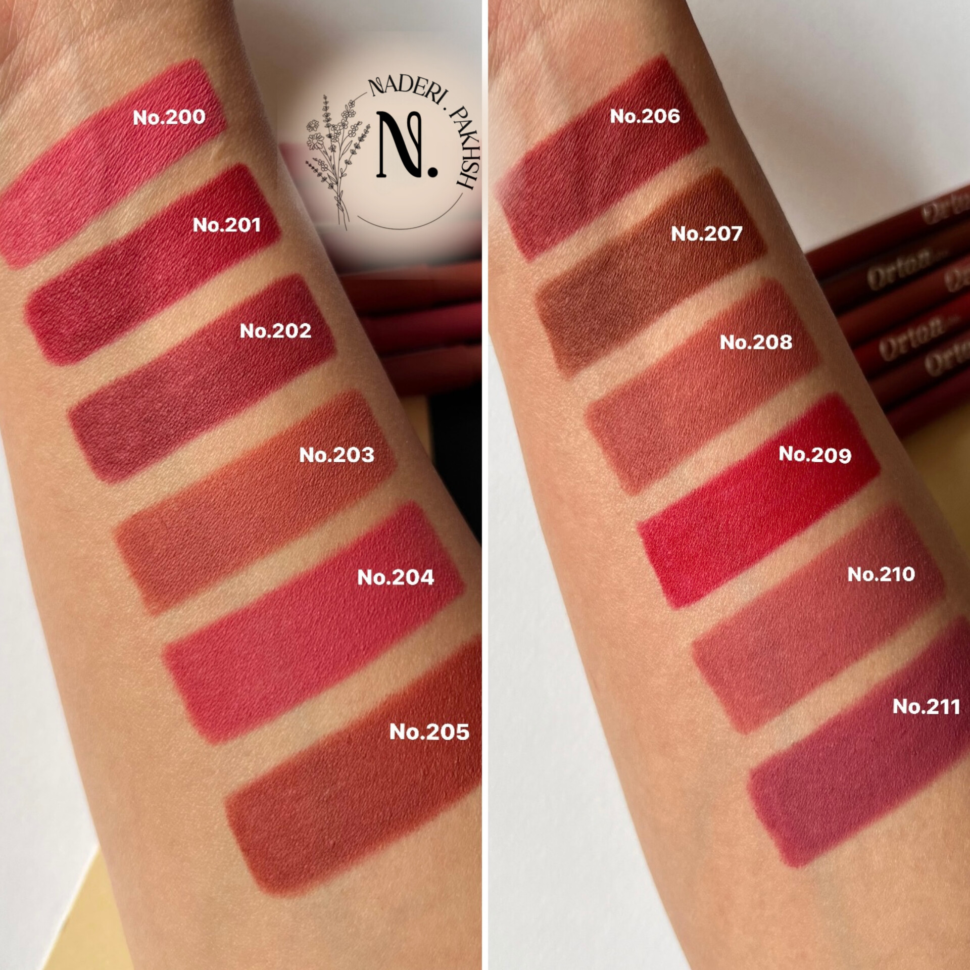 خط لب بادوام اورتون دارای بافتی بسیار نرم و سبک و مخملی می باشد و به راحتی خط لبی ظریف و بادوام را طراحی کرده و در نهایت فرم زیبایی به لب ها هدیه می دهد بدون احساس سنگینی و همچنین حاوی ویتامین E و مرطوب کننده های قوی است که از خشک شدن و پوسته پوسته شدن لبها جلوگیری میکند . این محصول با ماندگاری بسیار بالا ، تقویت کننده و ترمیم کننده لبها بوده این خط لب محصول کشور آلمان می باشد و طرفداران بسیاری در ایران دارد . تمامی آزمایشات مربوط به سازگاری پوستی طبق آخرین استانداردهای ایالات متحده ، اتحادیه اروپا و کشور ژاپن انجام و مورد تایید قرار گرفته است .